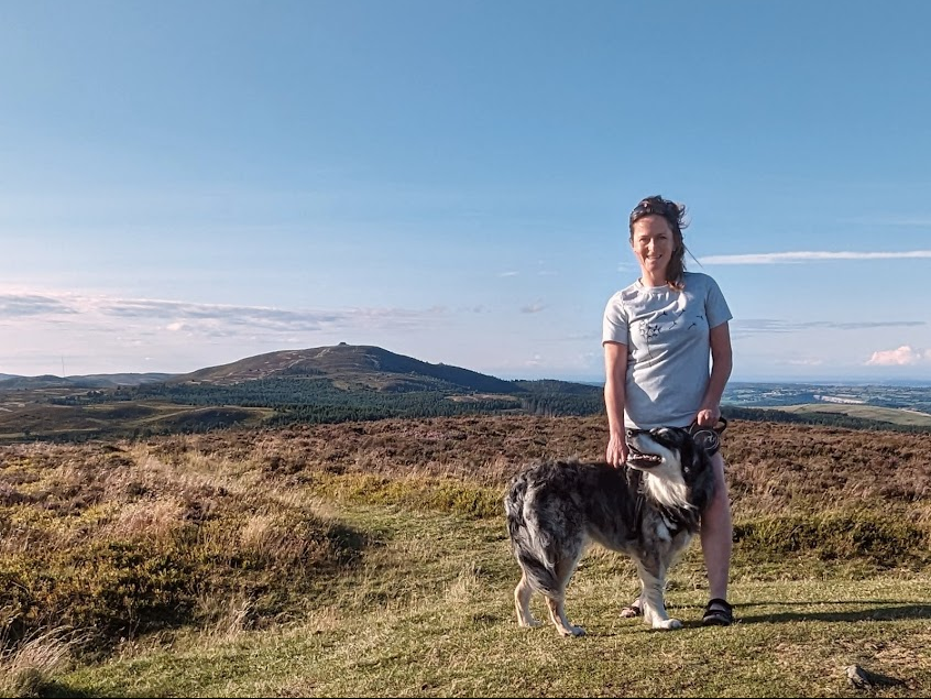 Get Outside Content Editor, Hilary Pullen walking on Foel Fenlli with her dog Ziggy